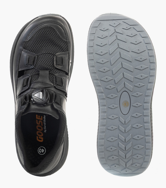 Особенностью моделей GOOSE является увеличенный мыс и эргономичная колодка. При этом внешний вид кроссовок выглядит стильно, добавляя вашему образу свежести и собранности. Обувь подойдет при повышенной полноте стопы, деформациях пальцев и суставов, при Hallux Valgus. Кроссовки в стиле спорт-кэжуал это отличный вариант для повседневных активностей в ритме города. Стопа чувствует себя свободно: пальцы не сдавлены, исчезают болезненность и дискомфорт в ногах. Плотный задник предотвращает завал стопы, а анатомическая стелька поддерживает своды. Верх кроссовок выполнен из сетчатого текстиля и натуральной кожи, что позволяет стопам дышать, предотвращая потливость. Дополняет конструкцию система быстрой шнуровки (Боа). Благодаря этому можно адаптировать посадку по стопе и фиксировать обувь за секунды. Амортизирующая подошва с легким перекатом поглощает ударные вибрации и равномерно распределяет нагрузку на суставы, существенно облегчая усталость. Протектор из резины способствует устойчивости на гладких поверхностях.